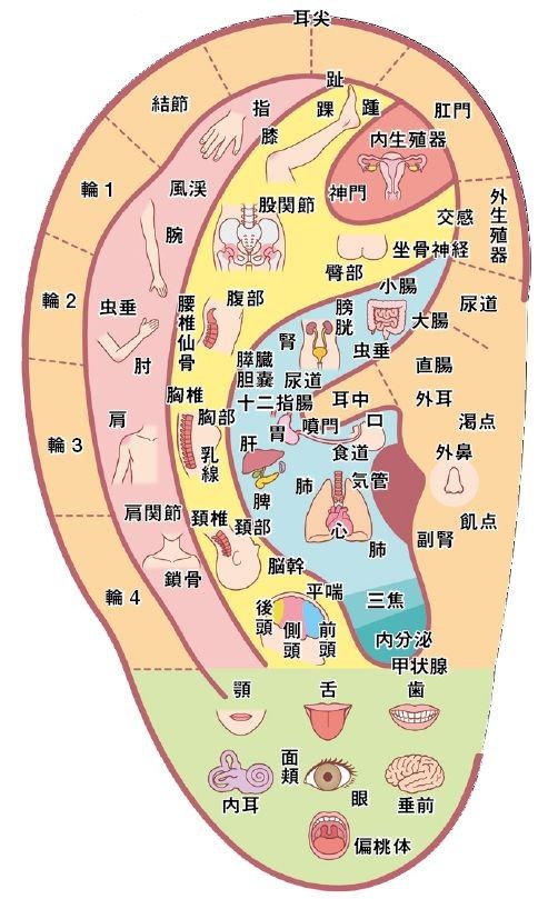 下の写真を参考に自身の不調だと思う所の耳ツボをつまむ意識してマッサージしてみてください!