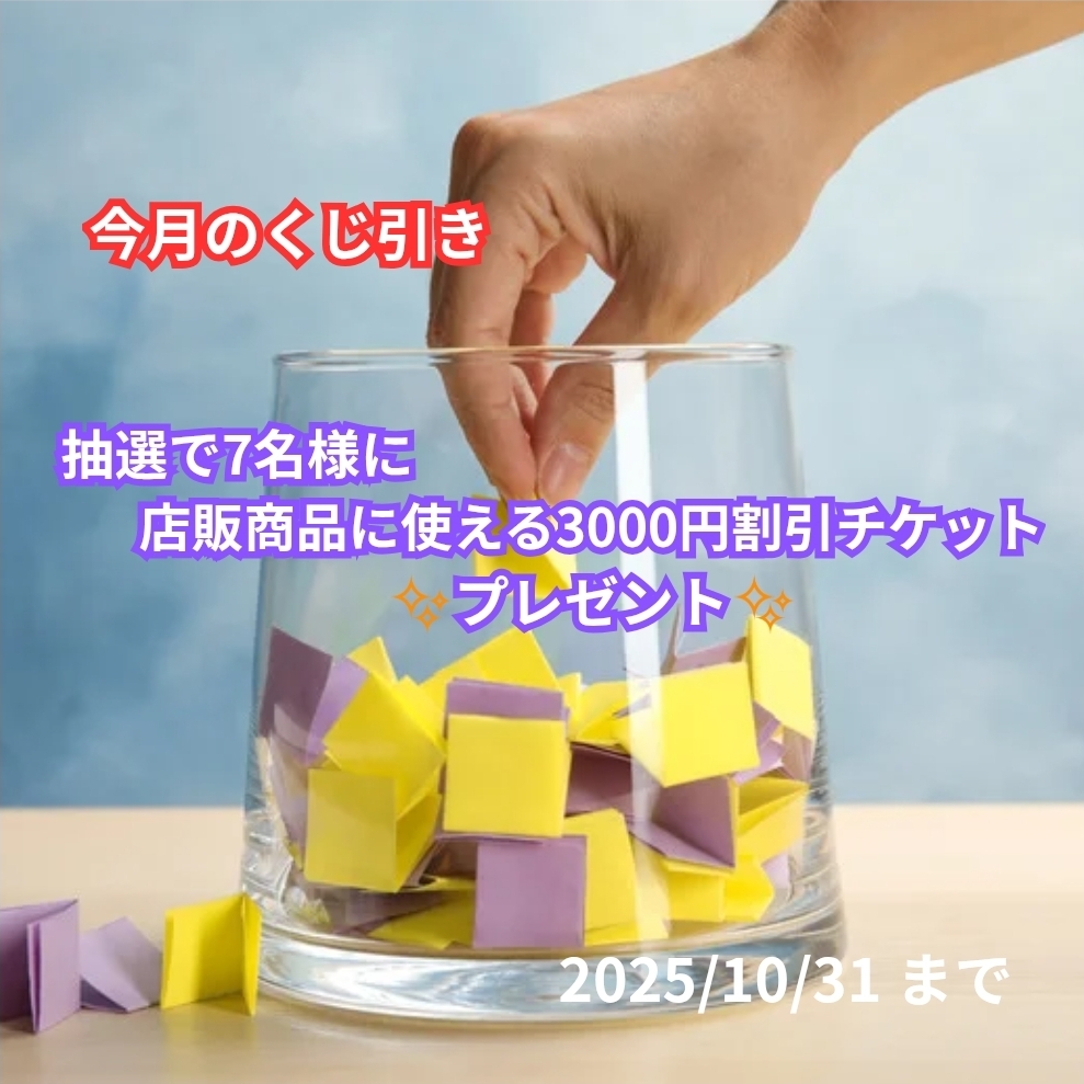 今月はほ抽選で7名様に店販商品に使用できる3000円割引チケットプレゼント🎁
