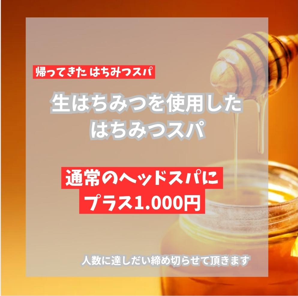 10月は以前人気のあったはちみつスパを人数限定でご用意🤲´-通常のスパにプラス1000円でつけていただくことができます💡 ̖́-